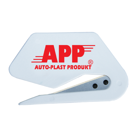 APP F-Cut to nożyk do folii maskującej APP F-Mask i APP FC-Mask. Umożliwia szybkie o gładkiej krawędzi obcięcie potrzebnej długości folii oraz precyzyjne wycięcie zbędnego fragmentu osłony z powierzchni elementu podlegającego naprawie.